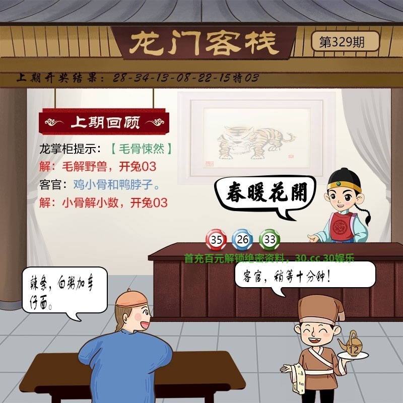 第330期掌柜:早春季節 解:它意味着温暖,鸟语花香 小二:客官,生病了吗 解:无 客官:凉茶加红苹果 解:凉茶解水肖的生肖鼠、生肖猪。红苹果解红波的特码数 推荐九肖:猪兔鸡龙蛇狗羊马牛 |